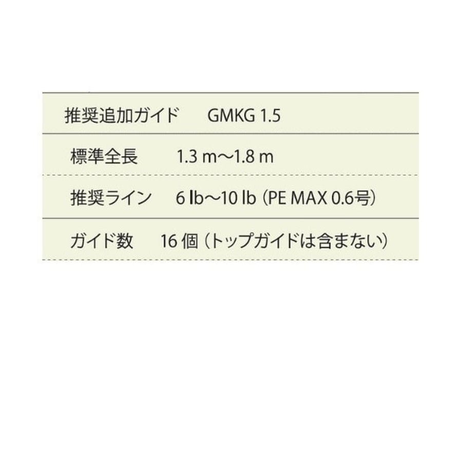 イカダ用 ※トップガイドは含まれておりません。★ガイド数:16個(トップガイドは含まない) 標準全長:1.3m~1.8m 推奨ライン:6lb~10lb(PE MAX0.6号) ※標準全長より長いブランクスの場合は、推奨ガイドをティップ部分に追加してください。
