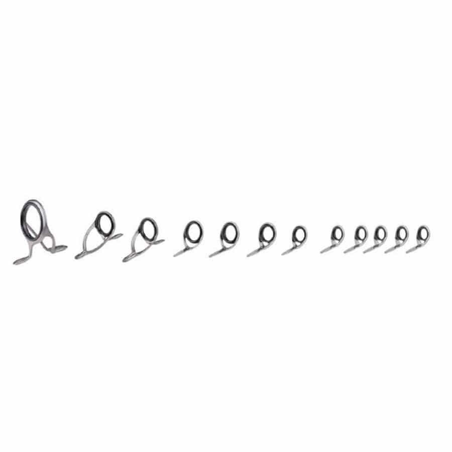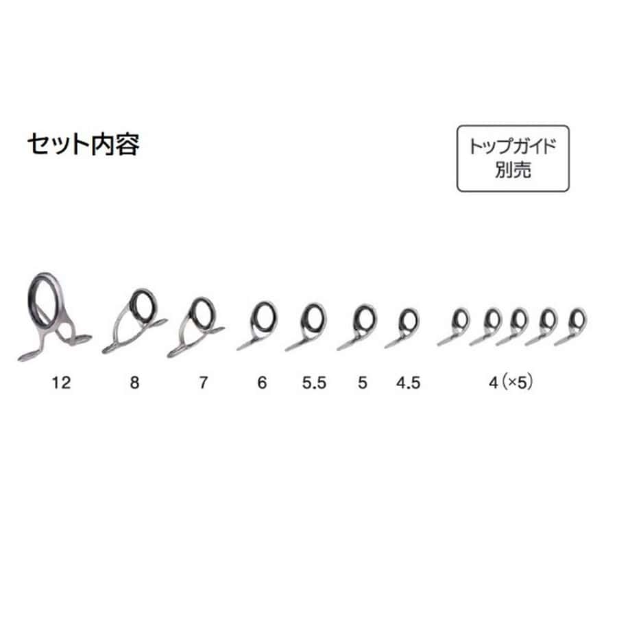 Fujiの最高級ガイドセット。チタンフレーム。※トップガイドは別売りです。ティップ径に合わせてお選びください。★ガイド数:12個(トップガイド別売) 標準全長:6ft~7ft 推奨ライン:4lb~12lb(PE MAX1.0号) ※標準全長より長いブランクスの場合は、推奨ガイドをティップ部分に追加してください。