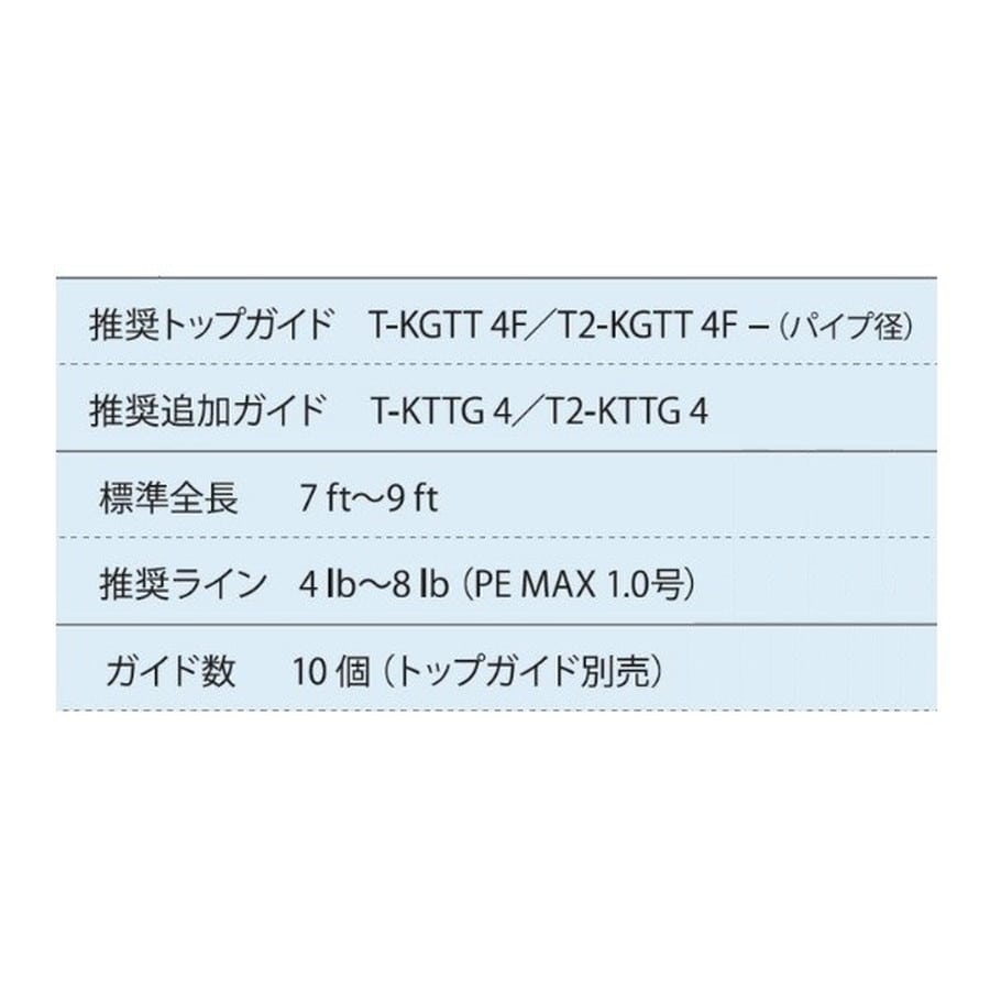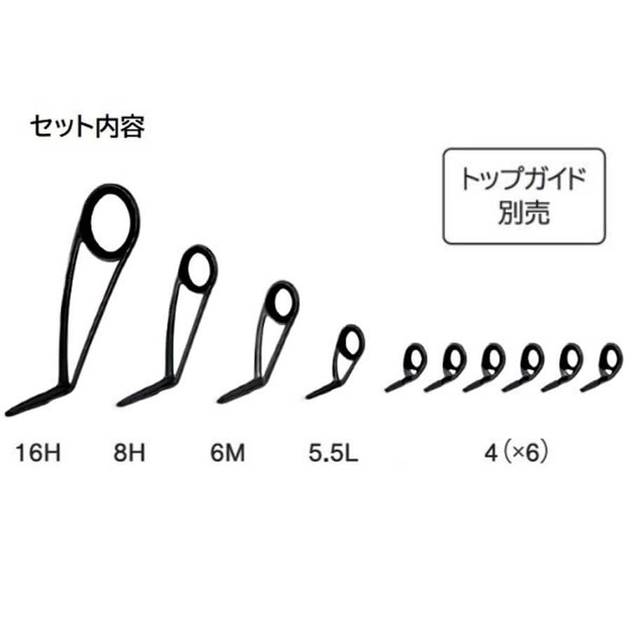 Fujiの最高級ガイドセット。チタンフレーム。※トップガイドは別売りです。ティップ径に合わせてお選びください。★ガイド数:10個(トップガイド別売) 標準全長:7ft~9ft 推奨ライン:4lb~8lb(PE MAX1.0号) ※標準全長より長いブランクスの場合は、推奨ガイドをティップ部分に追加してください。