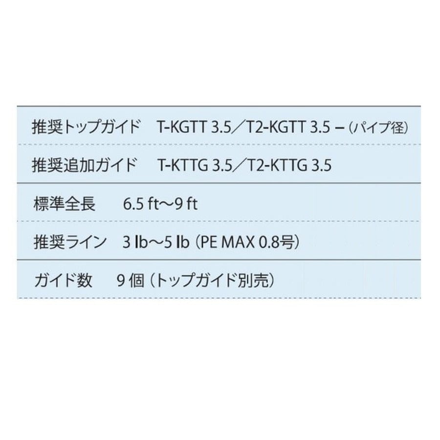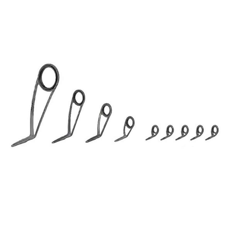Fujiの最高級ガイドセット。チタンフレーム。※トップガイドは別売りです。ティップ径に合わせてお選びください。★ガイド数:9個(トップガイド別売) 標準全長:6.5ft~9ft 推奨ライン:3lb~5lb(PE MAX0.8号) ※標準全長より長いブランクスの場合は、推奨ガイドをティップ部分に追加してください。