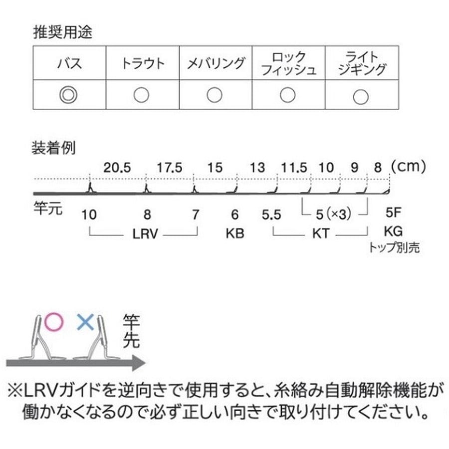 Fujiの最高級ガイドセット。チタンフレーム。※トップガイドは別売りです。ティップ径に合わせてお選びください。★ガイド数:8個(トップガイド別売) 標準全長:5ft~7ft 推奨ライン:5lb~20lb(PE MAX1.5号) ※標準全長より長いブランクスの場合は、推奨ガイドをティップ部分に追加してください。