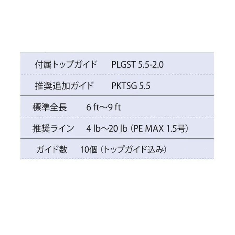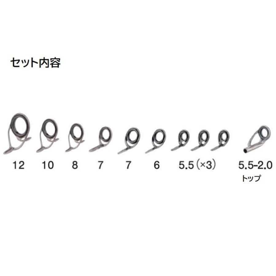 キャスティング バス用。トップガイド入りです。★ガイド数:10個(トップガイド込み) 標準全長:6ft~9ft 推奨ライン:4lb~20lb(PE MAX1.5号) ※標準全長より長いブランクスの場合は、推奨ガイドをティップ部分に追加してください。
