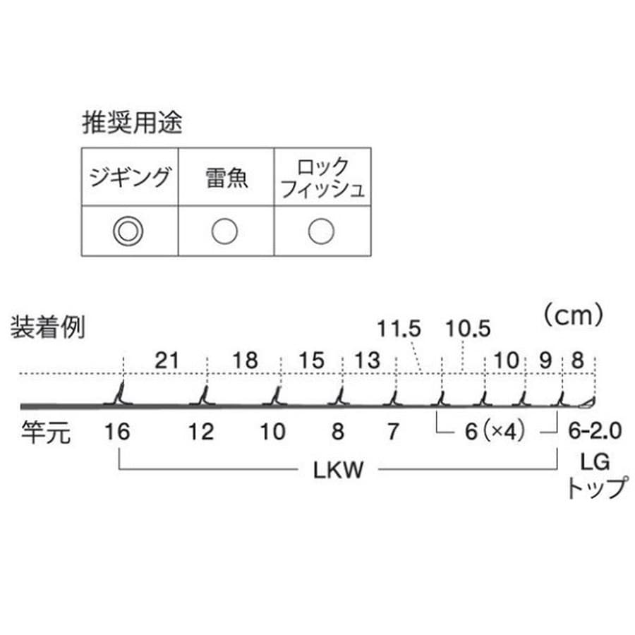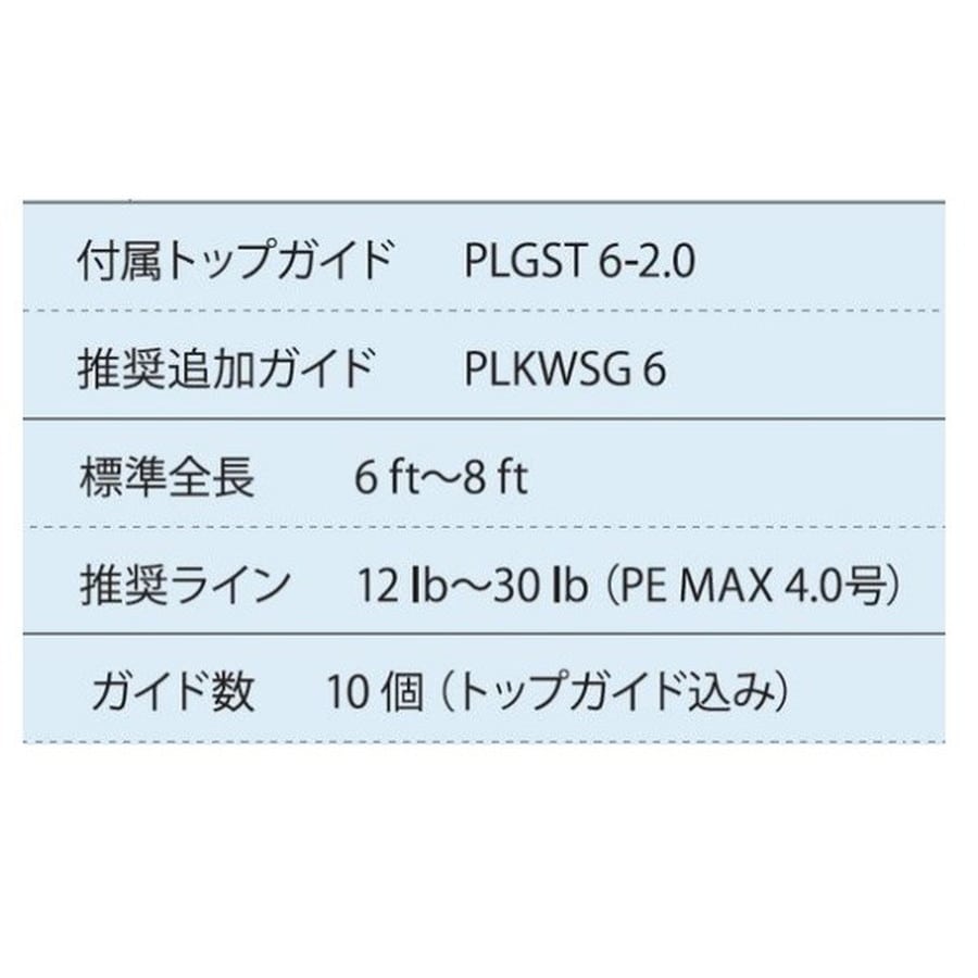 ガイド数:10個(トップガイド込み) 標準全長:6ft~8ft 推奨ライン:12lb~30lb(PE MAX4.0号) ※標準全長より長いブランクスの場合は、推奨ガイドをティップ部分に追加してください。