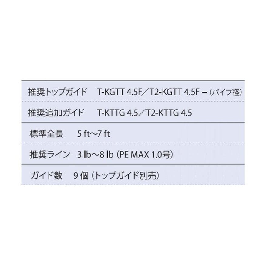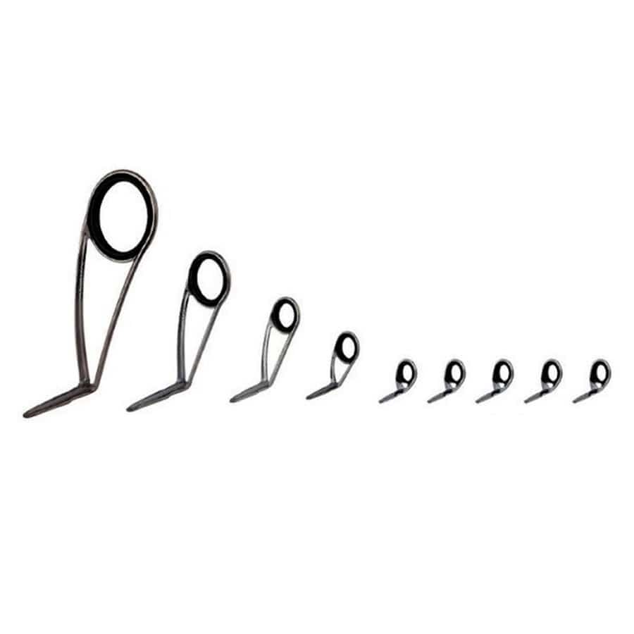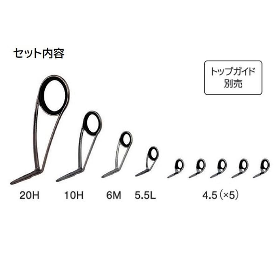 Fujiの最高級ガイドセット。チタンフレーム。※トップガイドは別売りです。ティップ径に合わせてお選びください。★ガイド数:9個(トップガイド別売) 標準全長:5ft~7ft 推奨ライン:3lb~8lb(PE MAX1.0号) ※標準全長より長いブランクスの場合は、推奨ガイドをティップ部分に追加してください。