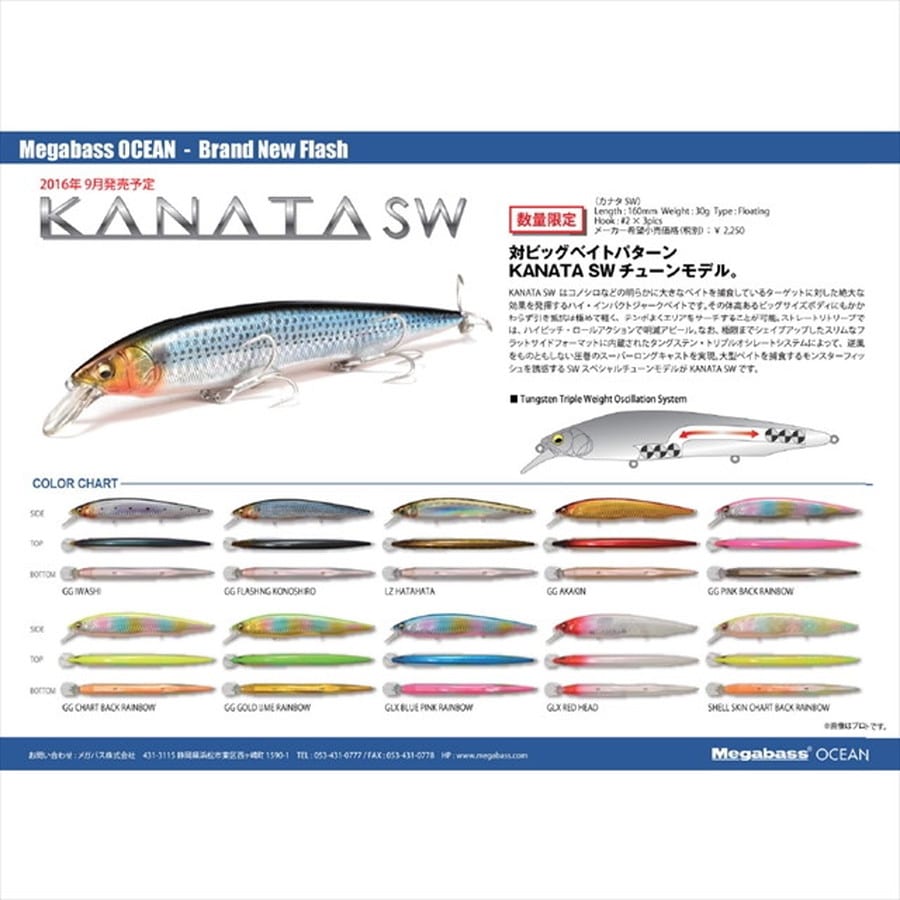KANATA SWはコノシロなどの明らかに大きなベイトを捕食しているターゲットに対した絶大な効果を発揮するハイ・インパクトジャークベイトです。その体高あるビッグサイズボディにもかかわらず引き抵抗は極めて軽く、テンポよくエリアをサーチすることが可能。ストレートリトリーブでは、ハイピッチ・ロールアクションで明滅アピール。なお、極限までシェイプアップしたスリムなフラットサイドフォーマットに内蔵されたタングステン・トリプルオシレートシステムによって、逆風をものともしない圧巻のスーパーロングキャストを実現。大型ベイトを捕食するモンスターフィッシュを誘惑するSWスペシャルチューンモデルがKANATA SWです。※掲載している商品の画像は代表画像を表示しています。また実物と色が違って見える場合があります。あらかじめご了承下さい。