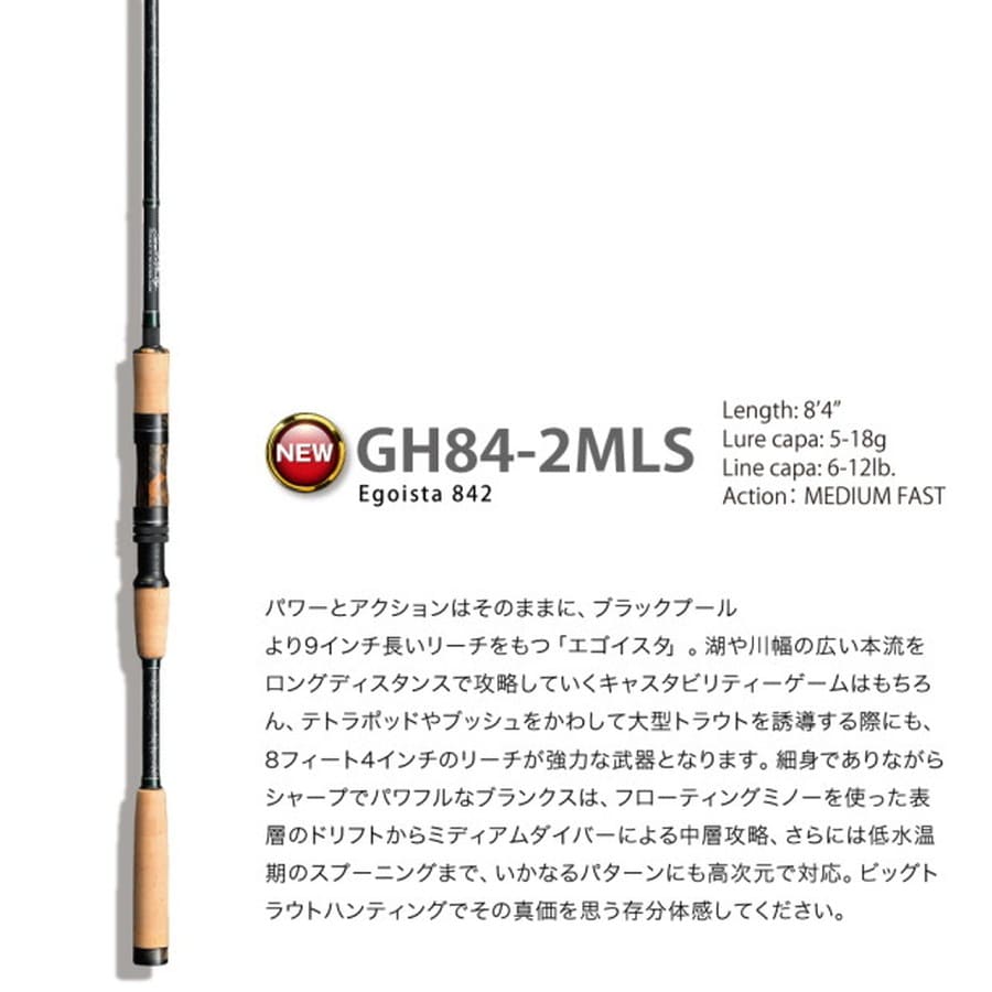 GH84-2MLS Egoista 842 ●パワーとアクションはそのままに、ブラックプールより9インチ長いリーチを持たせた「エゴイスタ」。湖や川幅の広い本流をロングディスタンスで攻略していくキャスタビリティーはもちろん、テトラポッドやブッシュをかわして大型トラウトを誘導する際にも、8フィート4インチのリーチが強力な武器となります。細身でありながらシャープでパワフルなブランクスは、フローティングミノーを使った表層のドリフトからミディアムダイバーによる中層攻略、さらには低水温期のスプーニングまで、いかなるパ※掲載している商品の画像は代表画像を表示しています。また実物と色が違って見える場合があります。あらかじめご了承下さい。