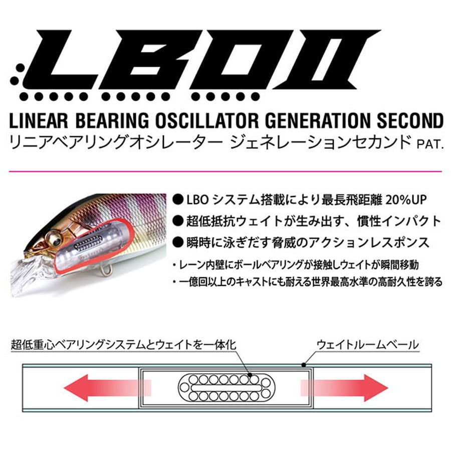 Length70mm Weight1/2oz. TypeFloating Depth : Max 3.5m Hook : #4 x 2pics ※掲載している商品の画像は代表画像を表示しています。また実物と色が違って見える場合があります。あらかじめご了承下さい。★メガバスデザイナー伊東由樹自身の30年におよぶデザイニングワークの中で、最もお気に入りなのが、ディープX200といわれています。クランクベイトとしてはもちろんのこと、ある時はフラットサイドシャッド、ある時はダイビングミノー、ある時は一定深層をキープしながらサーチ可能なバイブレーションベイトとして、あらゆる水域のアンダーウォーターゲームで多様な必釣能力とバーサタリティを発揮。スリムな200は、シャロー、ミッド、ディープ問わず、あらゆるレンジへの適合能力も魅力です。独自の進化形フォルムを有した今度の200は、前作にさらに磨きをかけ、これまでの武器だったハイピッチ振動に加えて、頭部の横転角が鋭いロールアクションを増幅。ただならぬハイピッチ・フラッシングと振動インパクトを放ちます。200のスリムボディの常識を覆す驚愕の「飛び」は、LBOIIならではのもの。並みいるファットクランクを軽く凌駕するウルトラロングキャスタビリティパフォーマンスが、あらゆるエリアで絨毯爆撃性能を発揮。異次元のクランクベイトです。