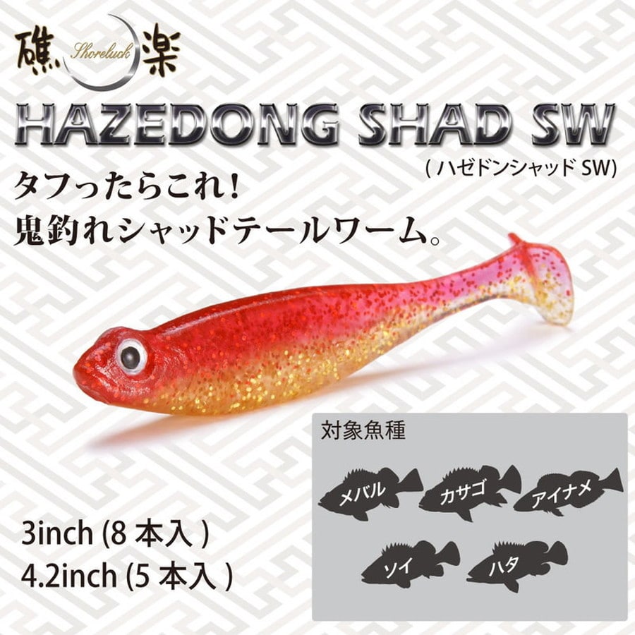 ハゼドンシャッドSWは、ロックフィッシュやフラットフィッシュ、シーバスなど、ソルトターゲットが好むベイトフィッシュの波動に近い、ナチュラルタイトアクションのシャッドテールワーム。超薄肉設計のシャッドテールにより、デッドスローリトリーブや細かいシェイクでもしっかりと水を掴んでターゲットを誘います。ジグヘッドリグはもちろん、腹部に施したスリットによりオフセットフックでのセッティングもやりやすく、バイト時のフッキング率を高めています。また、腹部に高比重マテリアルをインサートすることで、安定したスイミングを実現。タフな状況で力を発揮するハゼドンシャッドSWの能力をフィールドで体感して下さい。