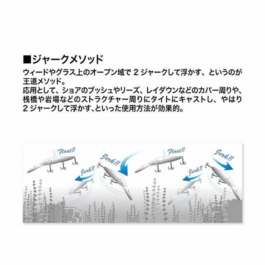 ワンテンR「Hi-FLOAT」シリーズに、ジャーク時の潜行深度を大きく取れるR+3モデルが登場。ワンテンR「Hi-FLOAT」は、ウィードやグラスの繁茂する高水温期において、圧巻の威力を発揮するワンテンRのシークレット・チューンドモデル。いわゆるウキウキパターンを広めた第一人者、佐藤信治が満を持して送り出すスペシャルメソッド対応モデルです。ウィードやグラス上のオープン域で2ジャークして浮かす、というのが王道メソッド。応用として、ショアのブッシュやリーズ、レイダウンなどのカバー周りや、桟橋や岩場などのストラクチャー周りにタイトにキャストし、やはり2ジャークして浮かす、といった使用方法が効果的。ワンテンR「Hi-FLOAT」だけの爆発力は、正直、秘密にしておきたかったことですが、多くのアングラーの笑顔がみたいプロガイド、佐藤信治だからこそリリースできたモデルです。