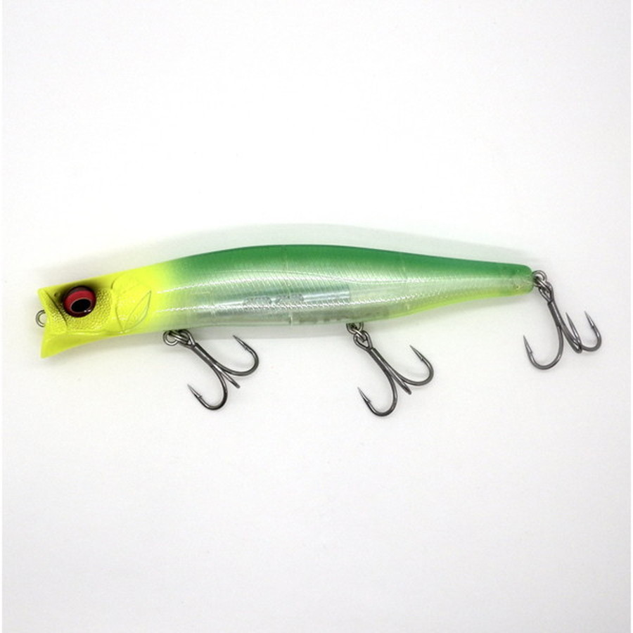 ランカーハンター久保田剛之プロデュースによるカゲロウシリーズの第3弾。シーバスが表層を意識し、ボラや落ちアユ、コノシロ等の大型ベイトを捕食する状況でボリューム感のあるハイアピールボディが最も効果を発揮。大きく切られたダーターカップは水を受ける表面積の拡大により更に水を強く押し動かしターゲットへ猛烈にアピール。アクションはオリジナルサイズと同様、低~中速リトリーブで微細なナチュラルロール、中~高速リトリーブでアピール力のあるスライドを伴ったロールへと移行する(可変ロールアクション)を生み出します。KAGELOU155Fに搭載したLBOIIは、ボディの大型化に伴い、ウエイト本体およびバランサーシャフトを新たに設計。KAGELOU124Fと比較してウエイト本体重量を2倍以上も増加させています。圧倒的質量を持つ新開発のベアリング内蔵ウエイトがキャスト時に瞬間移動!強力な推進ベクトルを発生させ、驚異的な飛距離を叩き出します。アクション開始時にウエイトは瞬時に前方のネオジム磁界に誘導・固着され、スイミングモードへと移行。