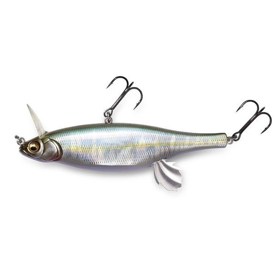 アンスラックスは、ローラージャイロ・バランサーシステム(PAT.P)によって、シャフトバランサー上を転位するボールウエイトが甲高いクリックサウンドを発生させ、多彩なマルチアクションを演出するウェイクベイト。スローリトリーブでは、水面でスーパーローリングアクションを生み出し、腹部のフィン(尻ビレ)が左右にテイリングして水流を掻き分け、独自の三角波でアピール。リトリーブ速度を上げると、水面直下10~20㎝程度をローリング・スイムするサブサーフェスシャッドとして活躍。また、ジャークによるスラッピングでは、水面でスプラッシュやバブルを発生させるボイルベイトを演出。ストップ&ゴーでは、ダイブ後にフラッタリングやライズアップするパニックベイトを再現。多彩なアクションとダイナミックなパフォーマンスがもたらすアンスラックス独自の釣獲力を是非フィールドでご体感ください。