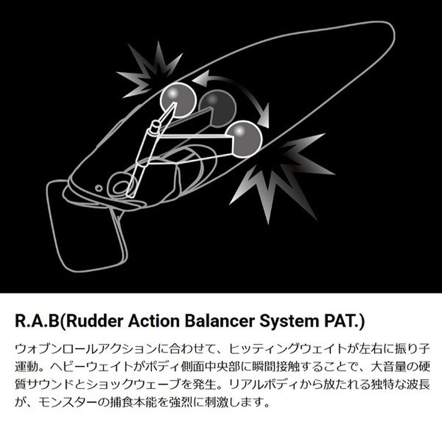 圧倒的な水流撹拌パワーと、強烈なフラッシングを放つスーパーフラットサイドボディが、新デザインの「スティングレイ・ビル」と、ボディに内蔵されたラダー・アクション・バランサーシステム(R.A.B)によって、かつてなかった驚異的な横転角によるキリモミフラッタリング「スクリュードライブ」アクションを発生。広域に拡散し、深層に位置するターゲットをも果敢に威嚇バイトさせる、圧巻のウエイクベイト・パフォーマンスを発揮します。なお、R.A.Bがレスポンシブな舵取りアクションの際に発生させる軽妙なボディアタックサウンドは、タフフィッシュをスプークさせずに的確に惹きつける、マイルドでリッチな音質へとチューニング。ビジョンワンテンをはじめ、ポップマックス、アイ・スライドなど、稀代の名作の数々を世に送り出してきたアイティオーエンジニアリングが放つ、こだわりのハイパフォーマンスプラグです。