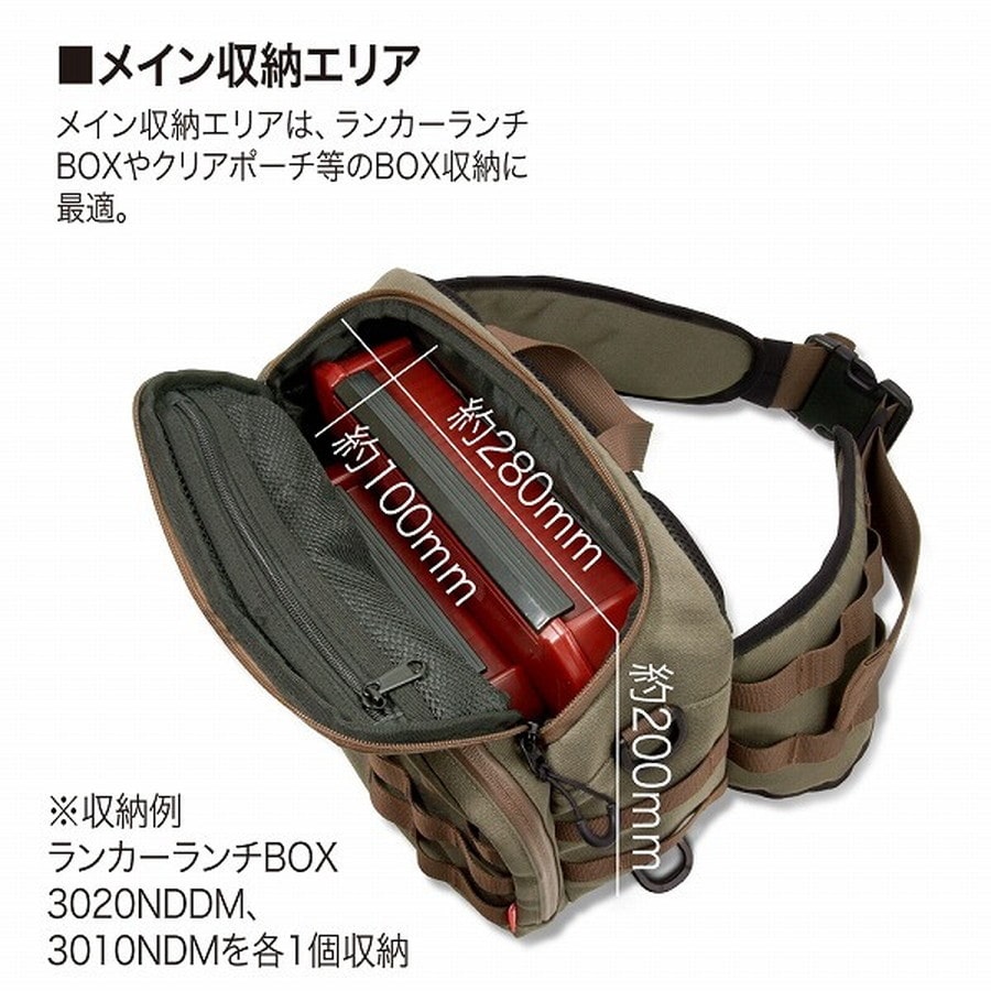 メガバスカスタムバッグがさらに進化を遂げ、フィッシング・アクティビティを強力にサポートする新次元のギアとして生まれ変わりました。十分な容量のメイン収納エリアと小物類を仕分けやすいフロント収納エリアに加え、さらに多くのアイテムを収納可能なファスナーポケットが充実。バッグサイドに設けたD管およびウェビングテープは、プライヤーやフィッシュグリップ、ポーチなどを自由に装着してカスタマイズが可能。移動中やファイト中でも必要なアイテムへ瞬時にアクセスできます。付属のショルダーベルトを用いれば、ウエストバッグからショルダーバッグへの変更も可能です。このバッグはあなたの釣りのスタイルそのものを形作るキャンバスとなるでしょう。