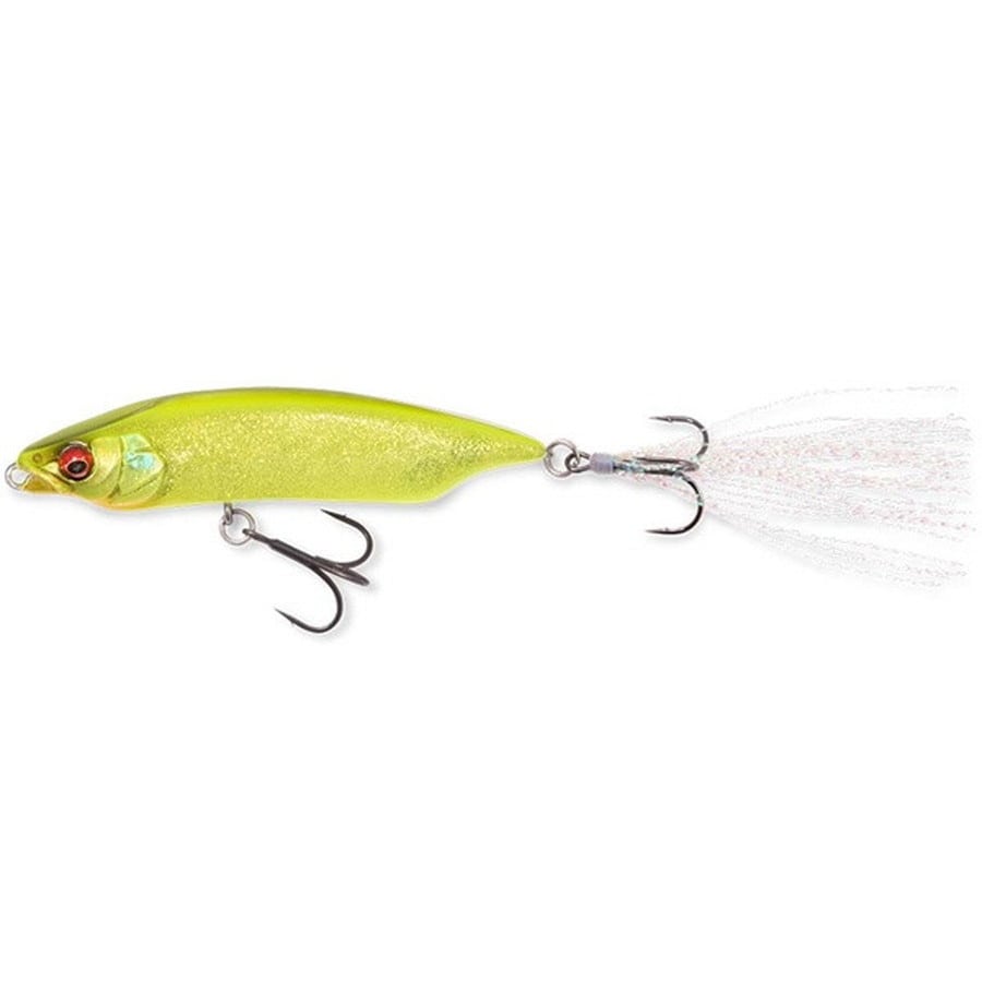 水面直下で披露する華麗なドッグウォーク&ロングダート!!さながらそれは、「リップレス・ジャークベイト」だ。KARASHI 80は、オリジナルのKARASHI同様に水面直下のドッグウォークアクションを手軽かつ、ダイナミックに展開。さながら「リップレス・ジャークベイト」ともいうべき水面下で展開する規則的なロングダート性能は、水面までターゲットが出切らないシビアな状況下で新次元の釣獲パフォーマンスを発揮。伊東由樹のハイドロダイナミクス理論が生み出したファンクショナルなボディ形態は、左右への規則正しいドッグウォークのリズムが刻みやすい節度ある水噛み抵抗感をもたらし、ジャークやトゥイッチによる水面直下での左右への規則的なロングダートを実現。まさに、リップレス・ジャークベイトと呼べるNEWジャンルを創造し、稀代のバージンインパクトを発揮します。水面に出切らないナーバスなターゲットに対して、ダートアクションを仕掛けて喰わせる一撃必釣のシークレットパフォーマンスは圧巻。ぜひ、マジカルな釣果をご体感ください。