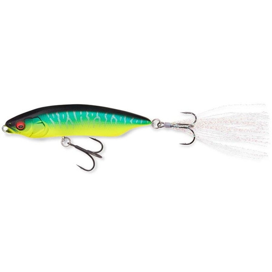 水面直下で披露する華麗なドッグウォーク&ロングダート!!さながらそれは、「リップレス・ジャークベイト」だ。KARASHI 80は、オリジナルのKARASHI同様に水面直下のドッグウォークアクションを手軽かつ、ダイナミックに展開。さながら「リップレス・ジャークベイト」ともいうべき水面下で展開する規則的なロングダート性能は、水面までターゲットが出切らないシビアな状況下で新次元の釣獲パフォーマンスを発揮。伊東由樹のハイドロダイナミクス理論が生み出したファンクショナルなボディ形態は、左右への規則正しいドッグウォークのリズムが刻みやすい節度ある水噛み抵抗感をもたらし、ジャークやトゥイッチによる水面直下での左右への規則的なロングダートを実現。まさに、リップレス・ジャークベイトと呼べるNEWジャンルを創造し、稀代のバージンインパクトを発揮します。水面に出切らないナーバスなターゲットに対して、ダートアクションを仕掛けて喰わせる一撃必釣のシークレットパフォーマンスは圧巻。ぜひ、マジカルな釣果をご体感ください。