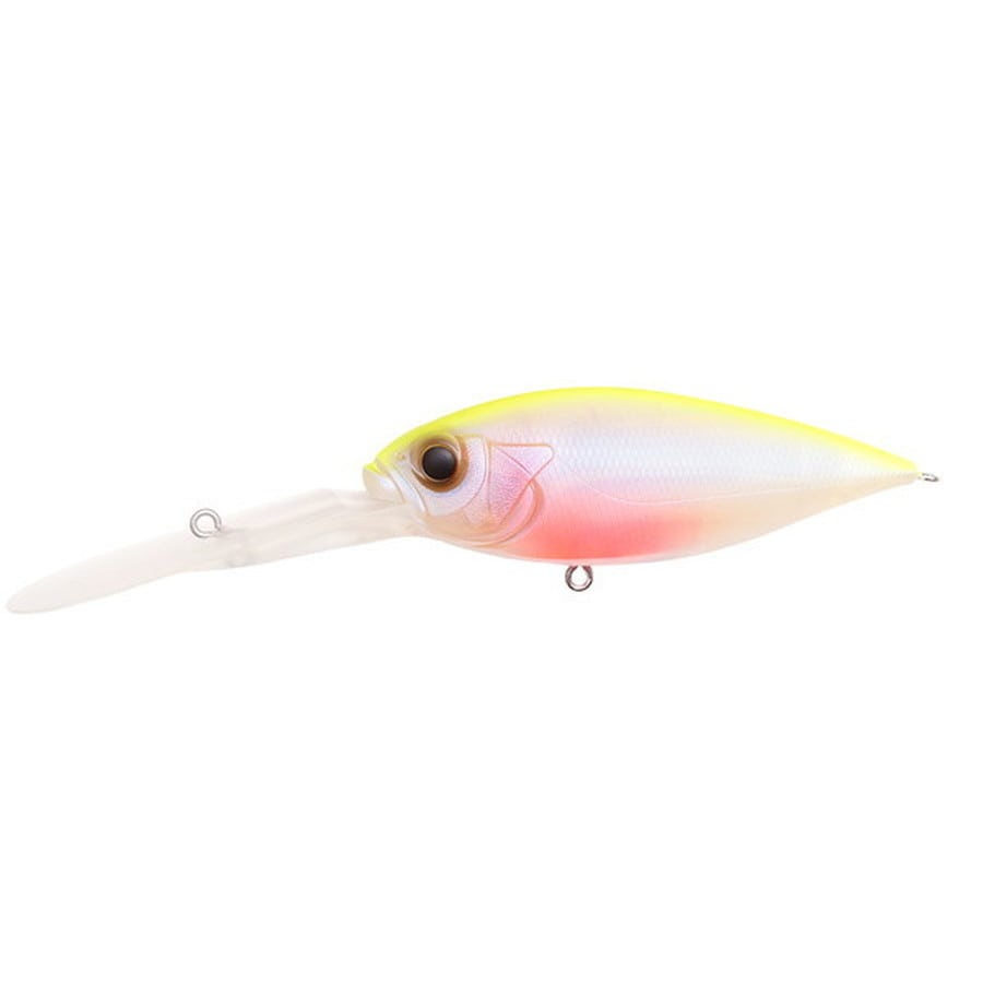 ディープシックスの6mに迫るプロダクティブ・ディープレンジの世界は、ダイビングクランクの極致といえます。これを実現しているのは、ディープXシリーズで定評のある多目的重心移動システム(PAT.)。キャスト時はメインウエイトがボディ後方に移動して飛行姿勢を安定化、空気抵抗を低減化させ圧倒的なロングキャスタビリティを発揮。潜行時にはメインウエイトが最前方に移動して急潜行アングルを生み出し、ウォブリングアクションで潜行。最大潜行深度に到達すると、前方固定されていたウエイトがセンターのスイミングポジションに移動し、ハイピッチロールアクションにシフト。ディープシックスは、さらに独自の極薄ダンパーリップにより水切れを追求し、リトリーブによる水流加圧を効率的にダイビングベクトルとハイピッチロールに転換。従来ディープクランクが到達できなかった超深層領域に踏み込み、聖域のモンスターを覚醒させます。
