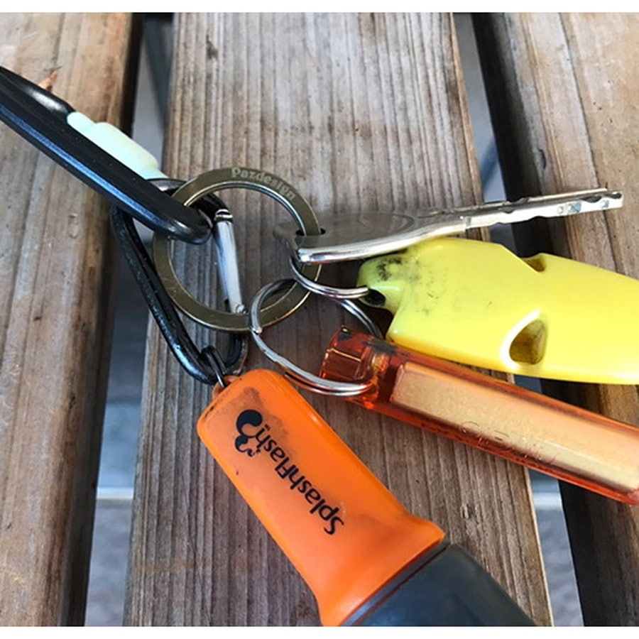 フィッシュグリップやランディングネットとコード類を接続したり、キーホルダーとして小物をまとめたりと何かと便利な二重リングです。