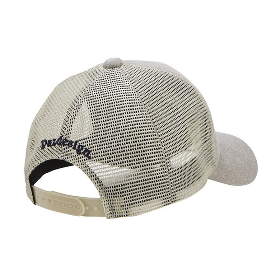 シックで使い勝手の良いデザインのメッシュキャップ!!使うほどに味のでるコットン生地を採用。6枚パネル。風合いのある生地を使用したフロントパネルにスクエアタイプのPazdesignロゴネームを縫い付けたメッシュキャップです。ソルト、フレッシュ、場面を問わず使えるシックなデザインです。