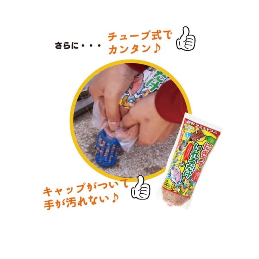 岸壁や堤防でのサビキ釣り専用の集魚エサです。容器からそのままサビキカゴに絞りだすだけで気軽にサビキ釣りが楽しめます。又キャップもついているから使用途中の移動も安心。簡単に使えて手が汚れにくい、ファミリーフィッシングにお勧めの製品です。★内容量:約800g