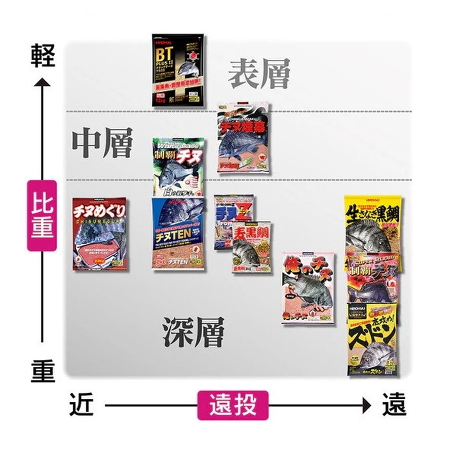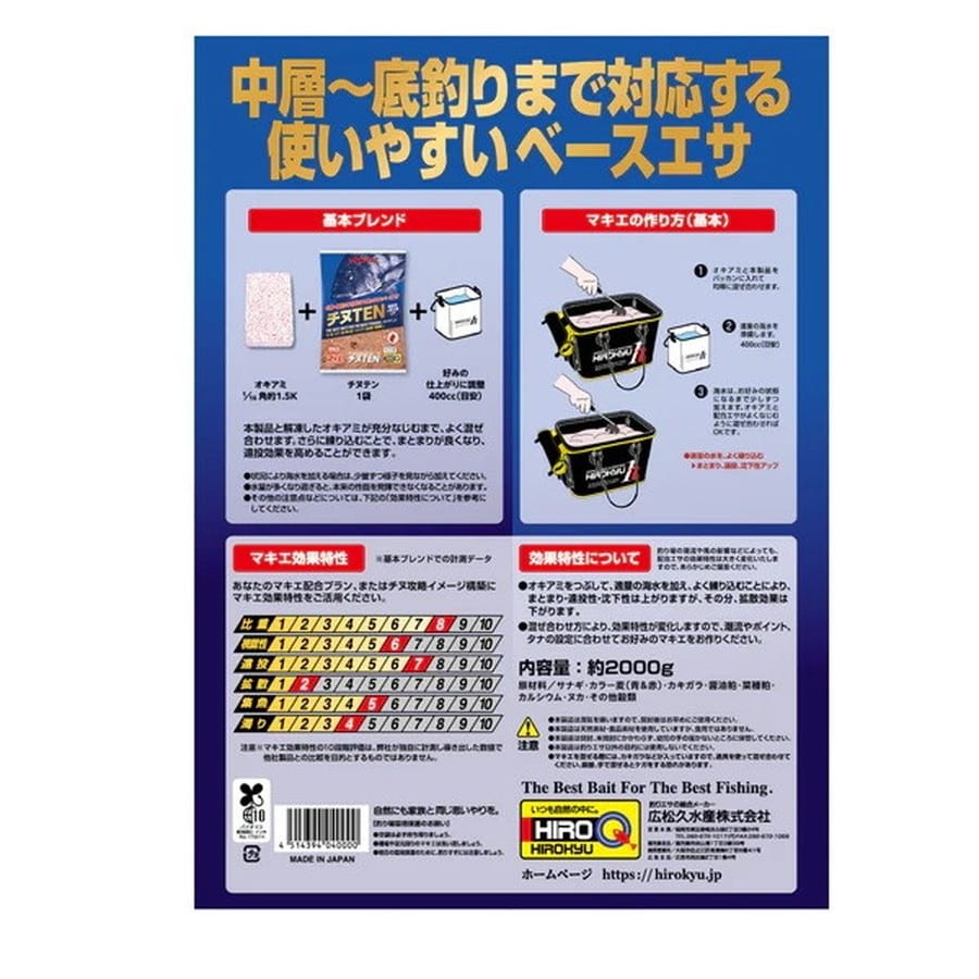 サナギ、カキガラ、ニンニク、麦など、チヌの好きな具材をふんだんに配合しました。ハイボリューム約2キロでお買い得。濁りの良さと、高い比重で中層下のチヌを攻めていけます。★内容量:約2.0kg