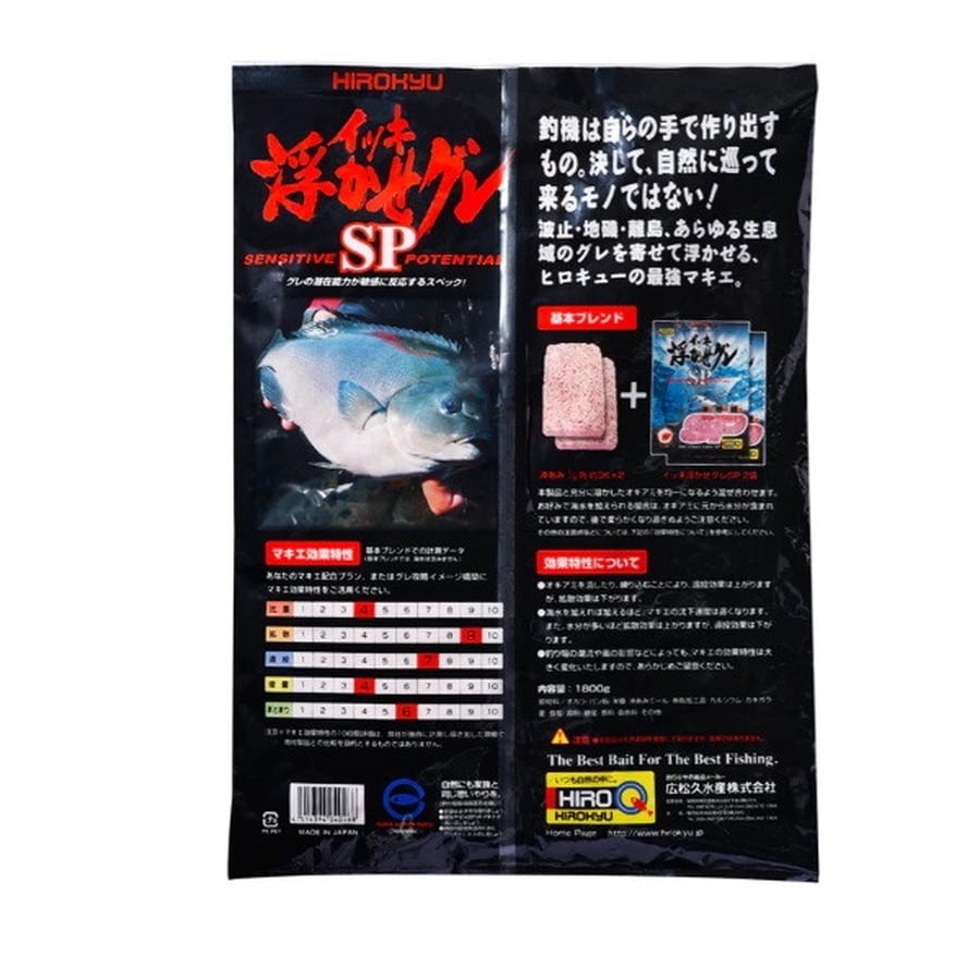 沖あみミールに加えて、養殖餌として使われる魚粉を配合。また糖蜜成分でさらに集魚力がアップ。糖蜜のもつ甘い匂いが、グレを強く惹きつける秘密です。ほどよい拡散性と沈下速度でグレを浮かせる。★内容量:約 1.8kg