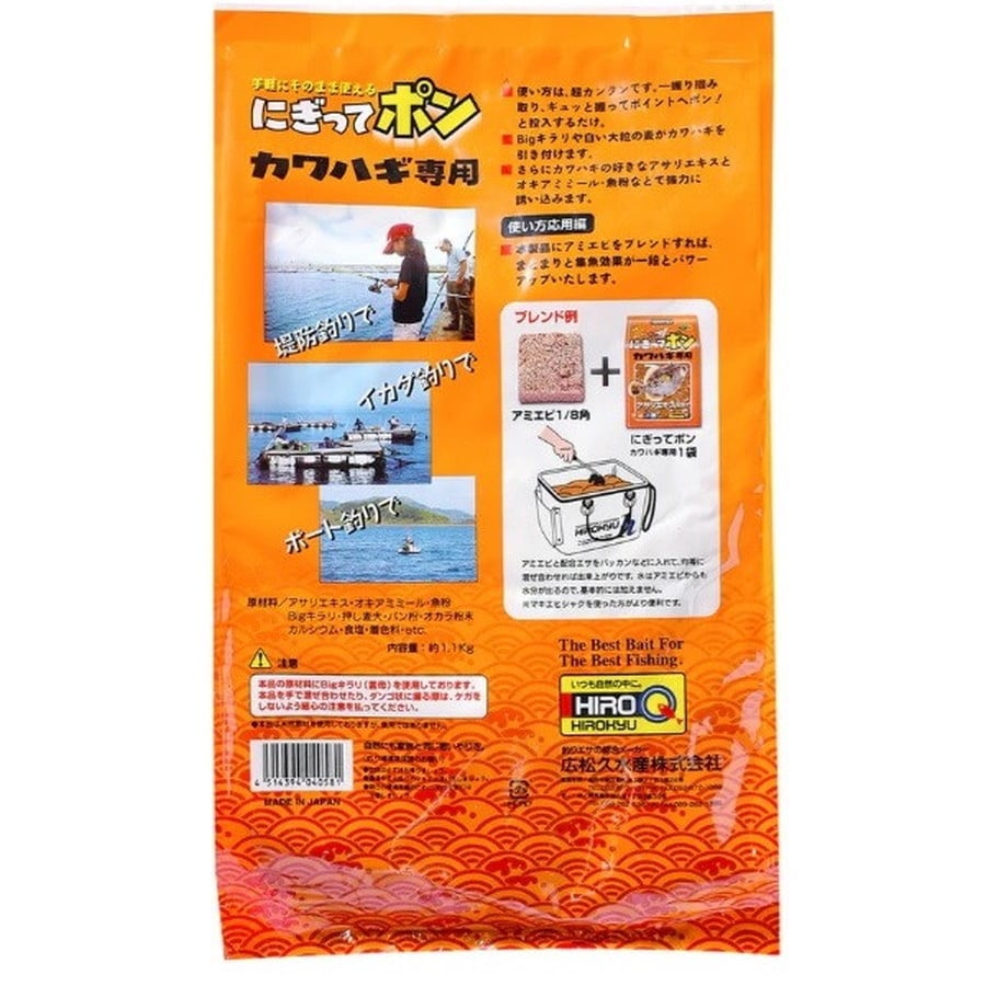 使い方は簡単、手軽にそのまま使える配合餌です。一握り掴んでポイントに投入するだけ、カワハギの好物アサリエキス、オキアミミール、魚粉などブレンドしさらに 好奇心旺盛な性質を利用して視覚効果、光物Bigキラリと白く目立つ押し麦大を配合しました。波止、イカダ、ボート釣りに最適です。★内容量:約1.1kg