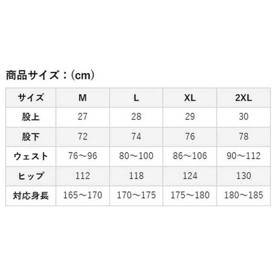 サイズ:XL(股上29cm、股下76cm、ウェスト86-106cm、ヒップ124cm、対応身長175-180cm)