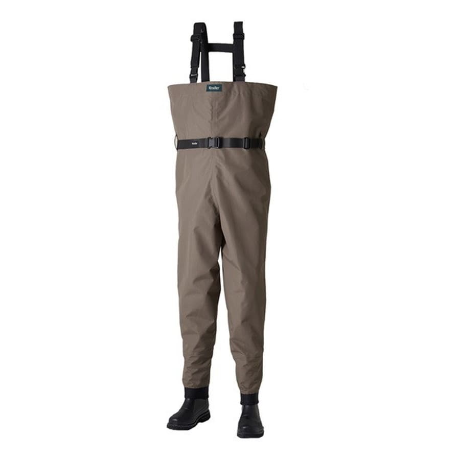 着脱が容易なブーツフットモデル本体は国産高密度ポリエステル3レイヤー素材(aquamaxSUPREME透湿防水加工)気温、湿度が高くなる時期や長距離移動時にもウェーダー内部の快適性を保つ透湿素材を使用グリップ力と耐摩耗性を両立したフェルトピンソール仕様河口や本流下流域など比較的足場の良いポイントで活躍するブーツフットモデル本体とブーツドッキング部分は耐久性を考慮した2重構造ブーツは紫外線ダメージ耐性に優れたPVC(塩ビ)素材歩行しやすい適度なホールド感、水圧による足への圧迫を考慮したオリジナル設計