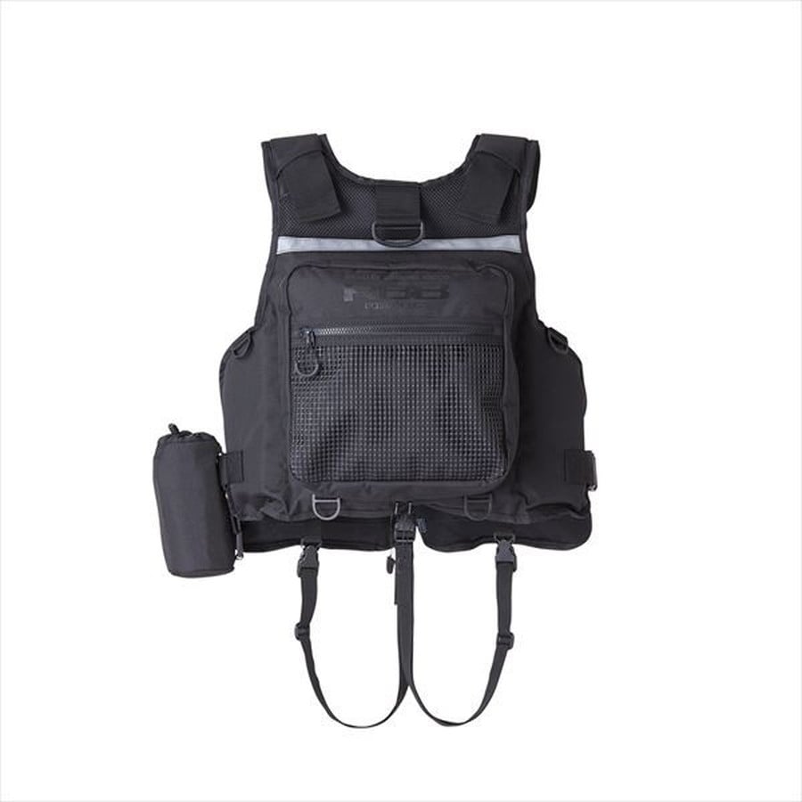 ロックショアヒップバッグとの併用時にバッグとベストが干渉しにくいショートタイプ。ロックショアでの使用を想定したフロントポケットレス仕様はロングロッドの操作性や下方向の視認性がUP。大型背面ポケットは取り出しやすいフルオープン仕様。小物を収納できるサブポケット付き。(内容物の落下には充分ご注意ください)本体のフラット性を追求したポケット内部プライヤーホルダー。取り外し可能ドリンクホルダー付き