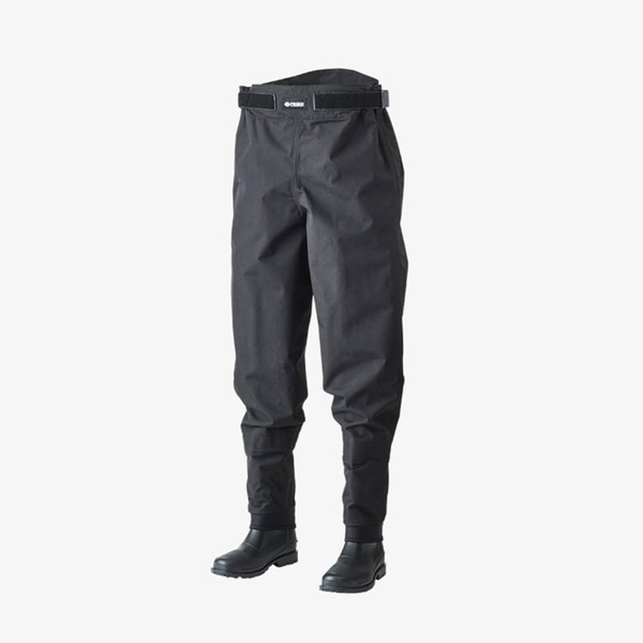 サーフゲーム専用ウェーダー。気温が高くなる時期に最適なウエストハイモデル。歩行時に砂や水分を吸収しないPCVソール仕様。砂地での歩きやすさ、アフターメンテナンスも考慮されたオリジナルソール。本体は強度、経年劣化耐性に優れる高密度リップストップナイロン(PVC防水加工)。細身ながらも動き易さ、運動性を追求したオリジナル立体裁断仕様。着用時にサイズ調整しやすいウエストベルト仕様。快適性を考慮したインナーメッシュ仕様。本体とブーツドッキング部分は耐久性を考慮した2重構造。ブーツは紫外線ダメージ耐性に優れたPVC(塩ビ)素材。歩行しやすい適度なホールド感、水圧による足への圧迫を考慮したオリジナル設計。