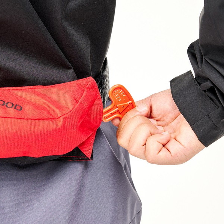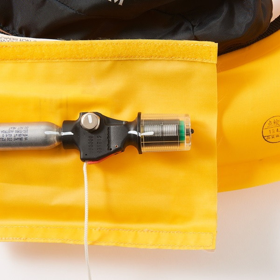 コンパクトな自動膨張式ライフベルト国土交通省型式承認品(小型船舶用救命胴衣TYPE-A)型式TK-5120RS 型式承認番号第5261号小型船舶の全ての航行区域で、法定備品として使用可能軽量、コンパクト設計ながらも、落水の際にはベルトに沿って気室が膨脹するレールシステムハルキーロバーツ社製V90000(HR 6F)シングルインジケーター付き充気装置ボンベやボビン(スプール)の装着状態、使用状態がそれぞれ一目で確認可能気室の膨脹には16g炭酸ガスボンベを使用、7.5kg以上/24時間以上(初期浮力約9kg)手動用作動策を引けば環境や状況に左右されず、いつでも確実に作動させることが可能【注意事項】使用ボンベセット:16HR6Fボンベセットは弊社では取り扱っておりません。Bluestorm(高階救命器具株式会社)へお問い合わせください。