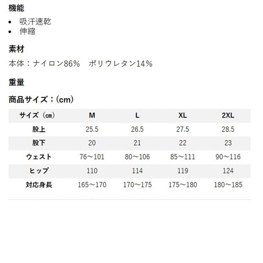 サイズ:M(股上25.5cm、股下20cm、ウエスト76-101cm、ヒップ110cm、対応身長165-170cm)