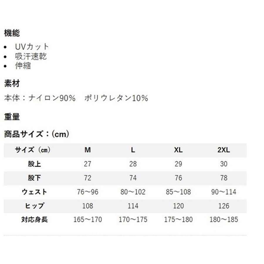 サイズ:XL(股上29cm、股下76cm、ウエスト85-108cm、ヒップ120cm、対応身長175-180cm)
