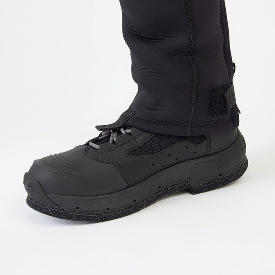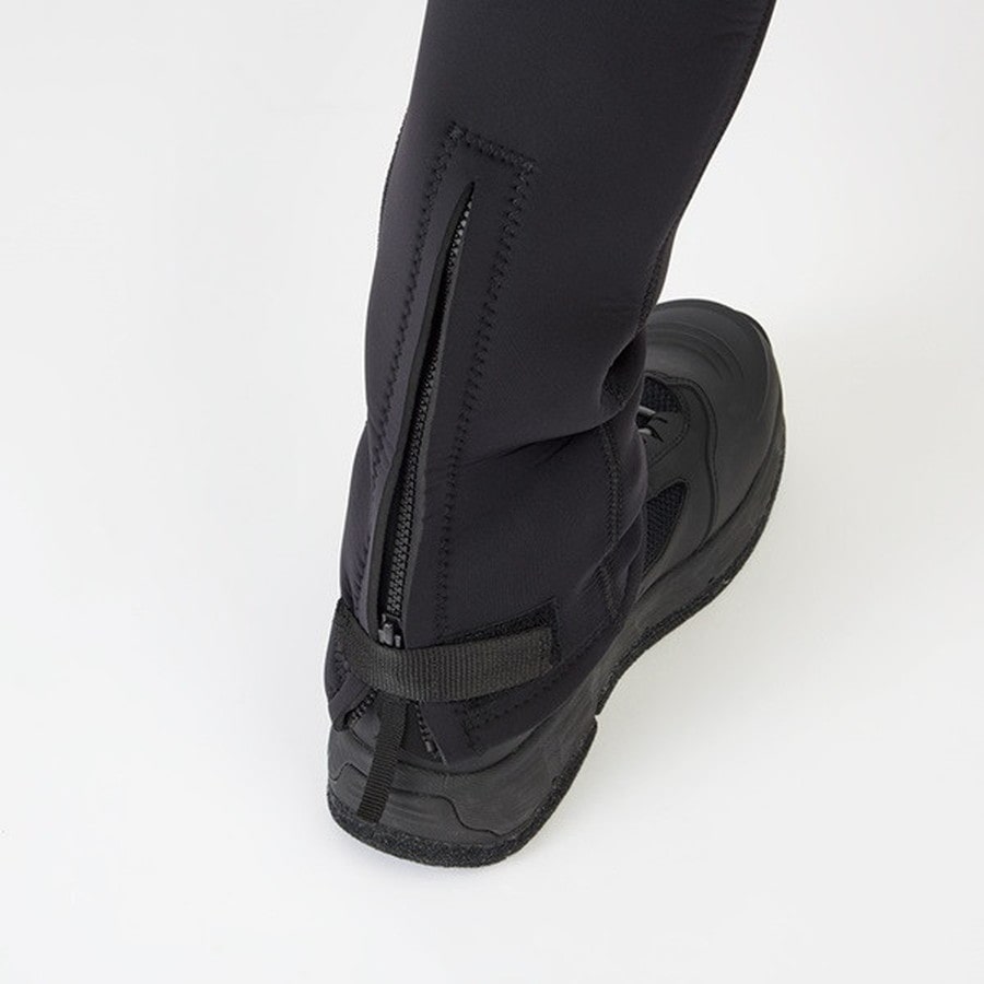 ロックショアゲームをより安全に安全性と着用時の快適性を考慮したウェツトタイツ着用時にもサイズ調整しやすいウエストベルト仕様フロント、裾部のファスナーは着脱時のストレスを大幅に軽減ファスナーは錆や腐食に強いビスロンファスナー不意な転倒や落水時に身体を保護するストレッチ性の高い3mmクロロプレンを仕様縫製箇所からの浸水を防ぐボンディング+すくいミシンでの縫製ダメージの多い膝、ヒップ部にはオリジナルパットを装備裾はシューズ内への砂利侵入を軽減するシューレースフック付きグラベルガード仕様