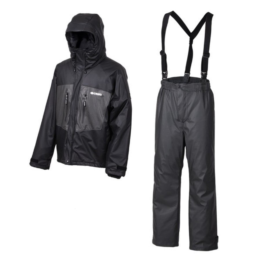 完全防水、汚れに強いウィンタースーツ。生地表面に水分や汚れが染み込まないPU(ポリウレタン)素材。臭いや汚れが付きにくく、気化熱による冷えも軽減。荒天時にも外気をシャットアウトし保温力をキープする完全防水仕様。フロントファスナーは錆や腐食に強い大型ビスロンファスナー。左右の胸ポケットは防水性を考慮した止水ファスナー式ポケット。袖口には水や寒気の侵入を防ぐクロロプレンインナーカフ仕様。着脱可能なサスペンダー付きパンツ