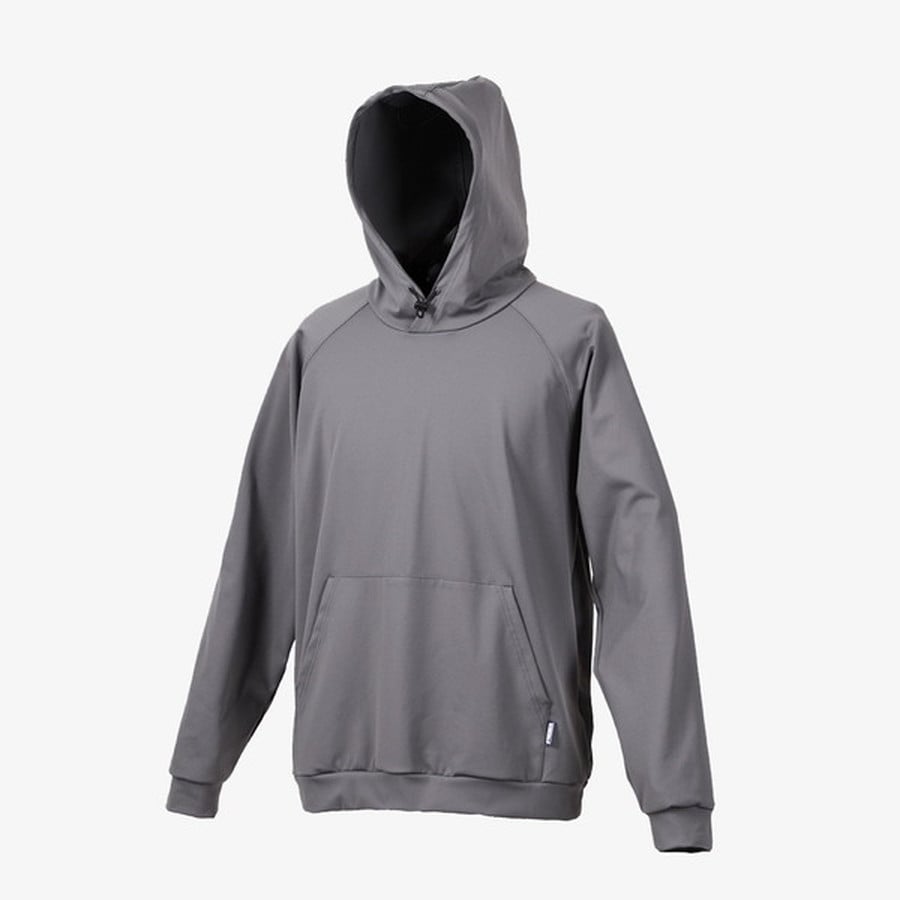 防寒ストレッチパーカー。伸縮性に優れた肌触りの良い裏起毛ポリエステル素材を使用。着用時の動きやすさ、保温性を追求。ミッドレイヤー・インナーとして3シーズン対応可能なストレッチフーディ―。フード+防寒キャップの着用で首回りからの寒気侵入をシャットアウト。