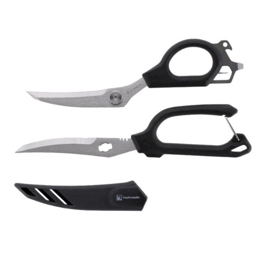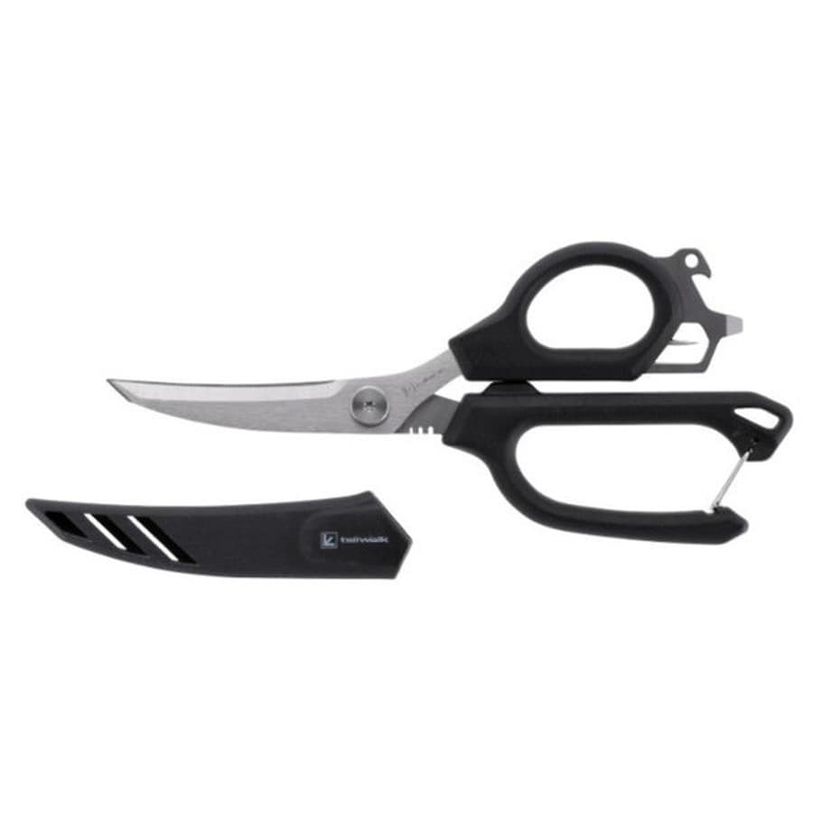 先鋭タイプの多機能シザース。切れ味の鋭いステンレス素材の多機能シザース。さびにくいステンレスボディーと安全面にも配慮したセーフティーキャップ搭載。魚を〆やすい先鋭タイプ。カーブタイプの刃先は、様々な用途でストレスフリーな切れ味を実現。