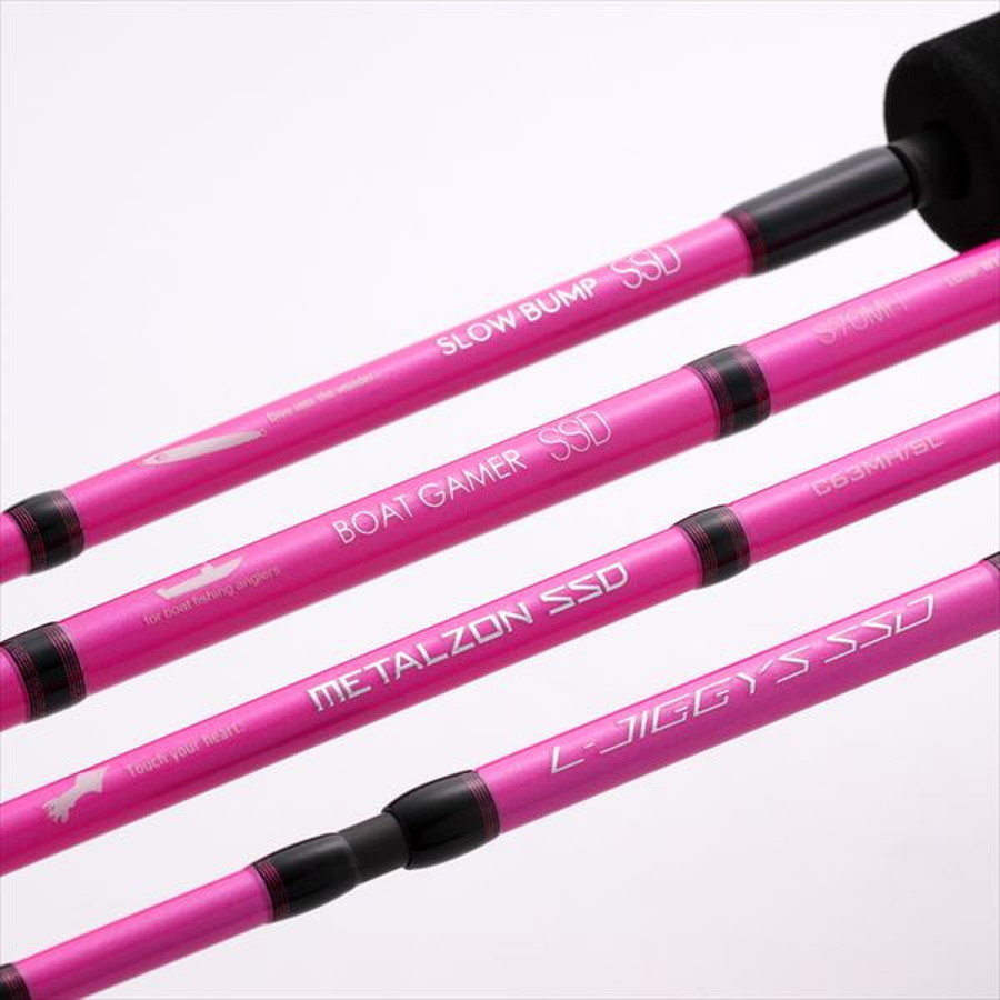 全国のスローピッチゲームを幅広くカバーする万能オールラウンダー。tailwalkのスタンダードなスローピッチジャークロッド「スローバンプSSD」の20周年アニバーサリーモデル(完全限定ショッキングピンクカラー)。ワンランク上の操作感とフィーリングを追求したスローピッチジャーク専用のチューブラーモデル。様々なターゲット、フィールドタイプ、潮流やコンディションなど、全国でおこなわれるスローピッチジャークを幅広くカバーするオールラウンダー。近海で水深100~250mラインを攻める基本の釣りはもちろん、中深海(水深300mライン)でアカムツを狙う際にも、最も出番の多い一本。