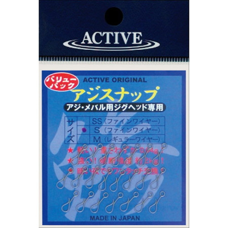 メバルスナップのバリューパッケージ。このスナップはメバリングだけに留まらずアジングにおいても、手返しアップの効果的なアイテムです。Sサイズは小型プラグなどに、Mサイズは2号前後の小型エギにもグッド。 ※掲載している商品の画像は代表画像を表示しています。また実物と色が違って見える場合があります。あらかじめご了承下さい。