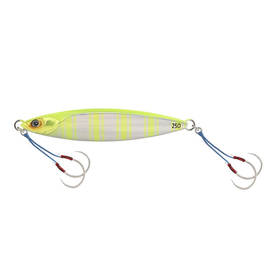 スローフォール特化型のバンブルズジグ。バンブルズジグ共通のフォールアクションへの移行レスポンスをさらに向上させ、滞空時間を延ばしたスローフォール特化型ジグです。速いフォールでは追いきれない魚にじっくり見せてバイトへと導くことが出来ます。特徴的なボディシェイプ。片面は大きく張り出し、もう片面はカップ状になっている左右非対称ボディシェイプ。フォール姿勢への移行を速く、フォールスピードを遅くを両立し得られる長いフォール時間は、じっくりと魚にジグを魅せ続け食わせの間を確保します。様々なアクションに対応。スローピッチジャークはもちろん、ハイピッチジャークやジャカジャカ巻き後のフォールでも、一瞬止まったような浮遊感を演出し食わせの間を作ります。スローなフォールは多くの魚種に効果的。ブリやサワラなどの青物から、速い動きのジグを捕食するのが苦手なハタやカサゴといった根魚、そしてヒラメや真鯛などにも効果的です。