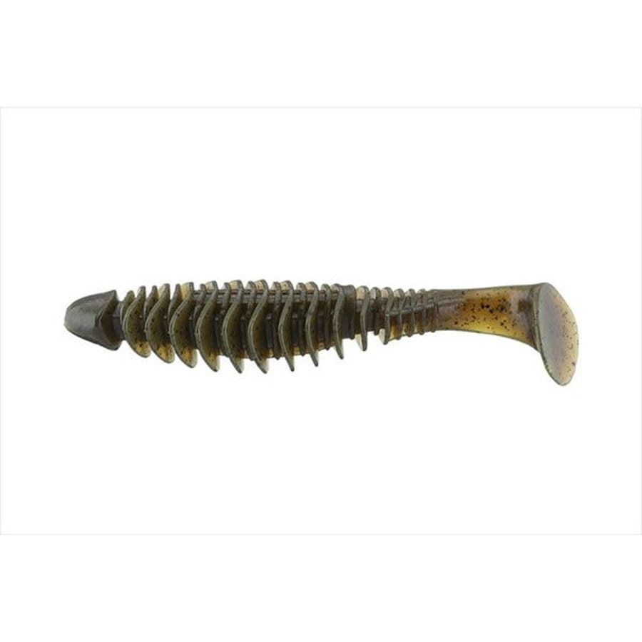 遅くて強いリブのチカラ。というニューコンセプトのシャッドテールワームが新たに登場。障害物に寄り添うビッグバスを攻略するために開発されたデッドスローラーは、その名のとおりデッドスローでのアクションを追求した食わせ特化型のシャッドテール。しっかりテールを動かしてバイトを誘発します。水に対する抵抗を最大限生み出すよう設計されたマルチリブ。水流をボディー全体に纏わりつかせ、デッドスローでもウォブリングする、安定したアクションを生み出します。ベイトサイズやフィールド状況に適したボディーサイズを選択できる2サイズラインナップ。状況に合わせた最適解のセレクトを可能にします。