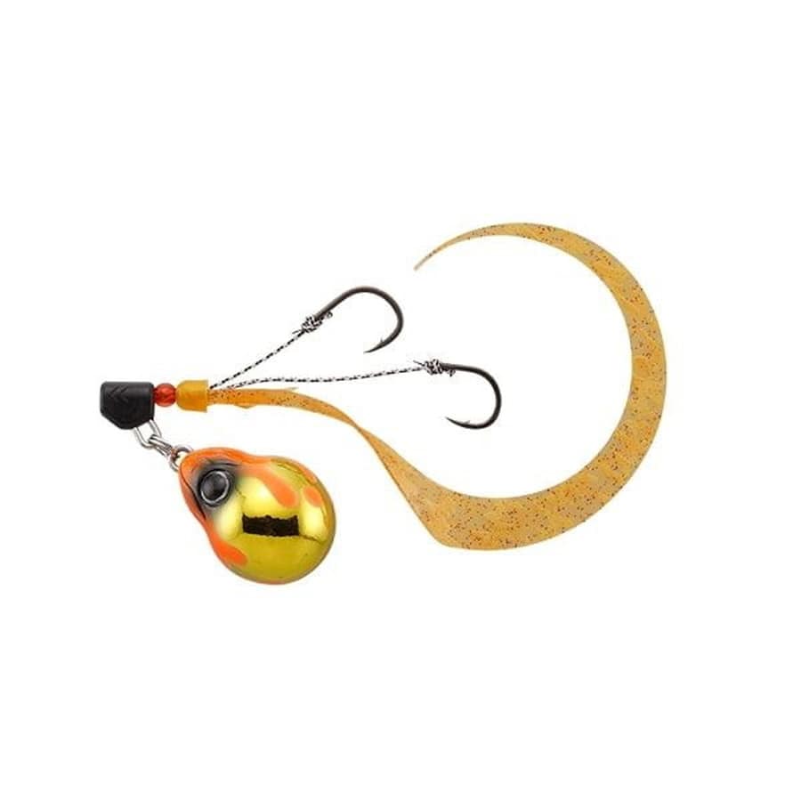 ドテラ・キャスティングでは、縦ではなく斜めや横からの水流を受けます。超低重心かつ丸型に専用設計されたヘッドは、斜めや横からの流れを受けても微動だにせず、ネクタイのアクションを最大限に生かして誘うことができます。★ウェイト:250g カラー:オレンジゴールド