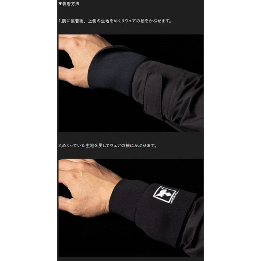 袖口からの水の侵入を防ぎ、雨の日はもちろん様々なシーンでの釣行をサポート。雨の日はもちろん、水しぶきのかかるシーンでの袖口からの水の侵入を防ぎ、より快適に過ごせるお役立ちアイテム、レインカフスが登場。2重構造となっており、防水素材であるクロロプレンゴムでウェアの袖を挟みこむことができるので、袖口からの浸水をしっかりと防ぐことが可能です。※袖口からの浸水を効果的に防ぐことが可能ですが、完全防水ではございません。