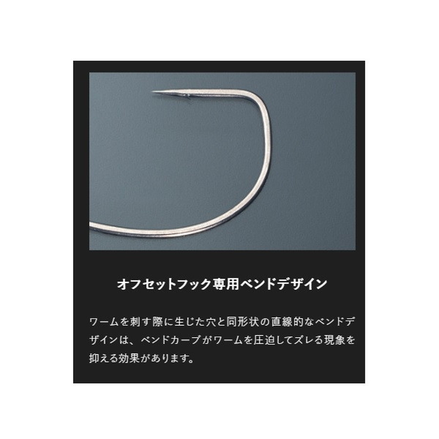 セットしやすくズレにくい、ワームを圧迫しにくいベンド形状。ワームをセットする際に生じた直線的な刺し穴と、ベンド内の直線部が合致する為、ワームにストレスを与えずにホールドします。