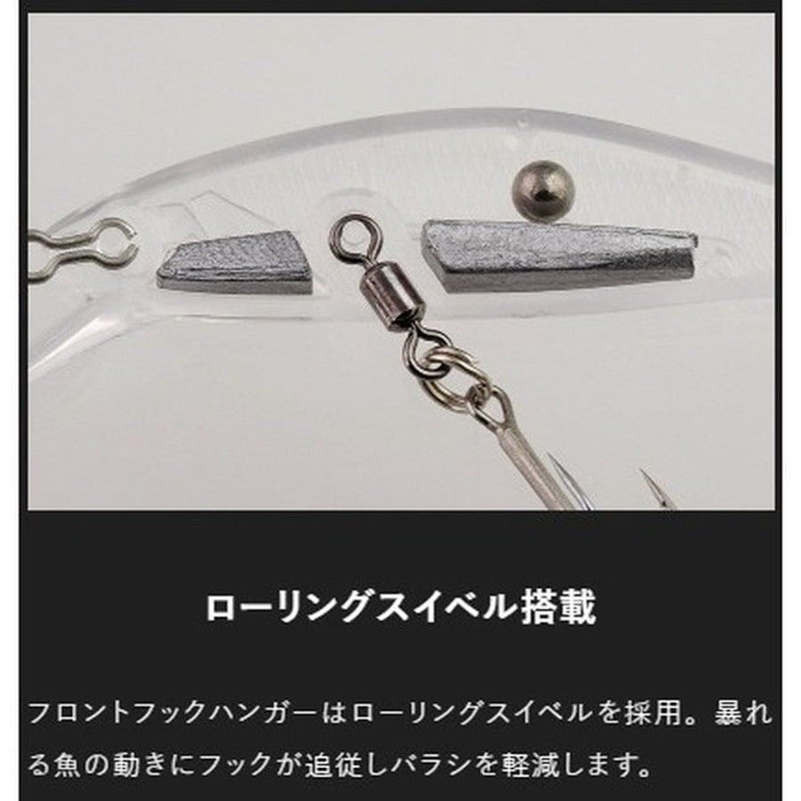 様々なラトルを使用し繰り返しテストを行い辿り着いた答えが、タングステン球を使用したワンノッカーサウンド。それぞれにベストな玉のサイズを使用することにより独自のサウンドを奏で広範囲から魚を引き寄せます。タングステンラトルを採用することでウエイトが約6%(全機種平均)アップ。ウエイトアップしたことにより、抜群の飛距離を活かしたアプローチと、より深いレンジへの対応も可能になります。深場や流れの強い場所では流芯ノッカー、浅場や流れの緩い場所ではオリジナル流芯と使い分けられます。トゥイッチではフラット面のボディを翻しヒラを打つハイレスポンスアクションに加え、音のアピールが加わることにより広範囲の魚にアピールすることができます。