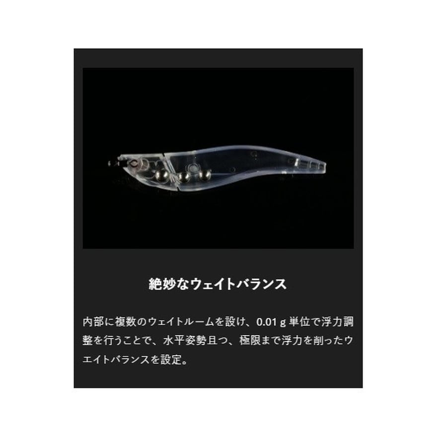 ビタ止めを可能にするゼロ浮力ウエイトバランス。イカメタル専用設計。イカメタル釣法におけるドロッパーとして専用設計されたウキスッテ。緻密なウエイト設定により、水中で静止(ステイ)時間を長く保つことでイカに十分な抱く間を与えることができます。