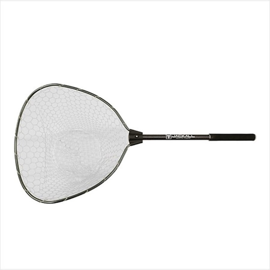 ラバーランディングネットは、主にボートフィッシングシーンを主眼に置いて開発を行いました。シャフト部にはカーボンマテリアルを採用し50cmシャフトで約65gと非常に軽量です。ネット部はラバーネットを採用しておりJB/NBCトーナメントに使用可能。ネットのフレームはやや外側に角度を付けた特殊形状フレームを採用しており、ランディング時に魚体をいち早くネットに滑り込ませることが可能な仕様です。