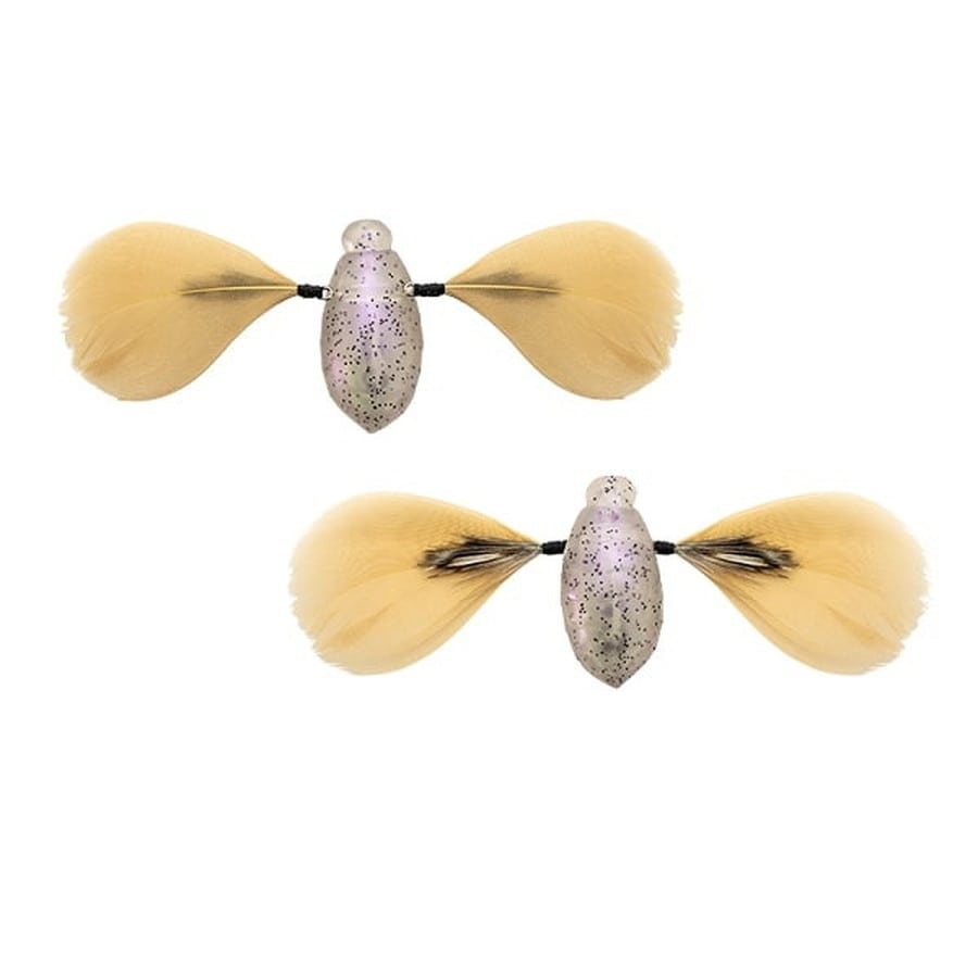 天然素材が放つ唯一無二の存在感で捕食本能を刺激します。羽根は可動域をある程度自由になるように設定しており、常にルアーのシルエットが変わり続けることで見切る隙を与えません。★全長:35mm