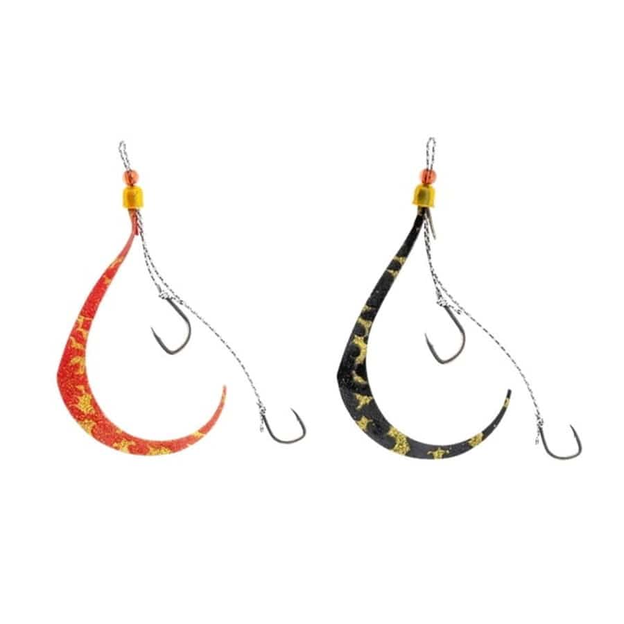 ビンビンスイッチに対応する純正スペアラバーフックセットです。各ウェイトに合わせたフックとネクタイを2色アソートでセットになっています。純正仕様はもちろん、状況に合わせてお好みのカラーを組み合わせいただけます。