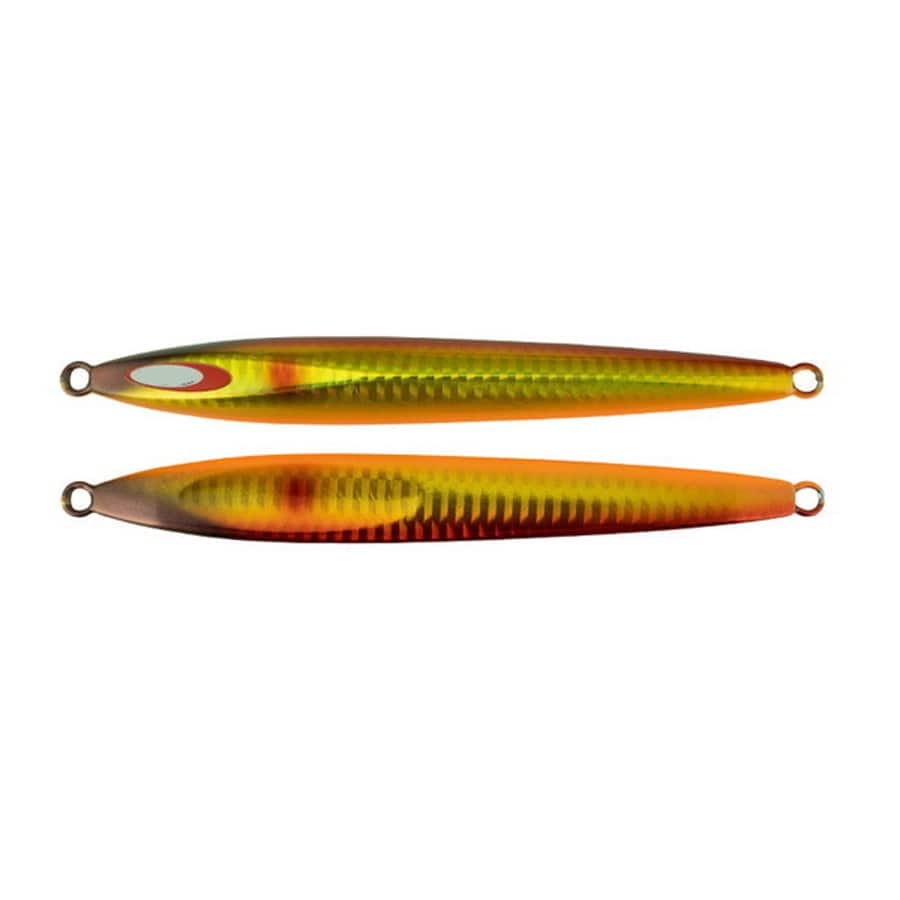 フォールでじっくり誘うハイアピールタイプ。フォールアクションに特化したハイアピールジグ。アンチョビメタル TYPE-IIのトリッキーな水平フォールアクションは、ロッドを大きく持ち上げるスロージギングスタイルでの使用に最適です。魚のヒットレンジがある程度絞り込まれた状況であれば、リフト&フォールを繰り返し、じっくりと魅せる釣りが有効です。明確に使い分けられるアクション設定。ワンピッチショートジャークにおいてもTYPE-Iに比べてワイドなアクション設定の為、ジグの使い分けを明確に行う事が可能。テスト段階からタチウオをはじめ様々な魚種を虜にしてきた高実績メタルジグです。【2024 NEW COLOR】アカキン/ボーダーホロ:ゴールド×レッドの刺激的な反射は、濁りの入った状況で特に有効なカラー。そのほか曇りや朝マズメなど、ローライトな状況下にも活躍します。